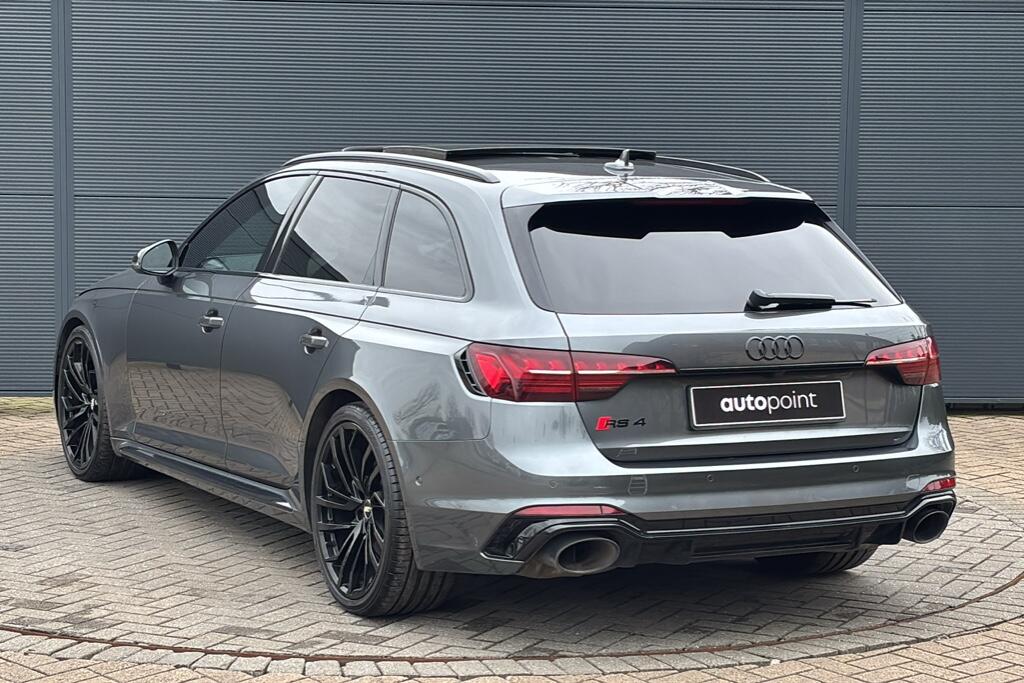 RS 4 badges on grille, the front wing panels and rear