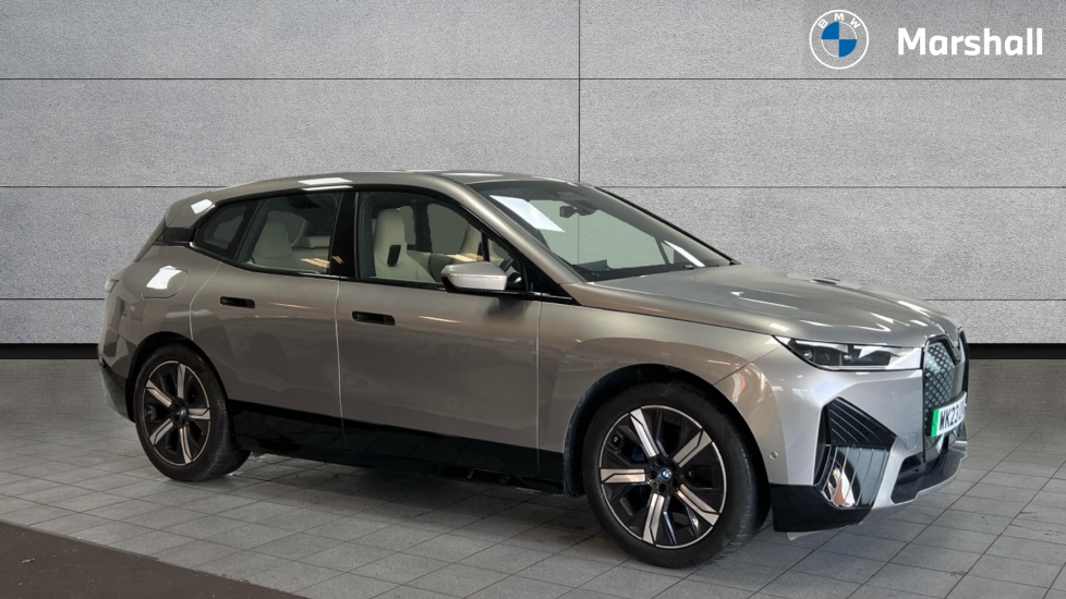 Model logo - iX on left of tailgate and xDrive model inscription and model designation on right of tailgate