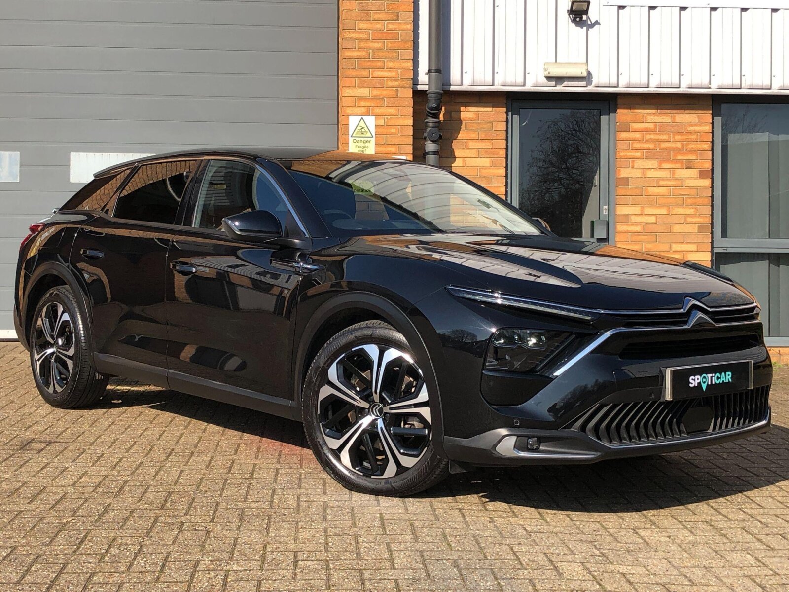 Gloss black Citroën chevrons with chrome surround, chrome Citroën lettering and C5 X badging on rear tailgate