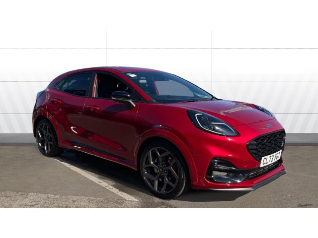 Unique ST body styling kit including contrast black roof, large rear spoiler and wing mirrors, plus Ford Performance embossed splitter
