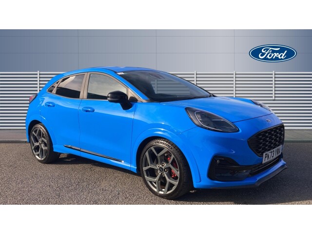Unique ST body styling kit including contrast black roof, large rear spoiler and wing mirrors, plus Ford Performance embossed splitter
