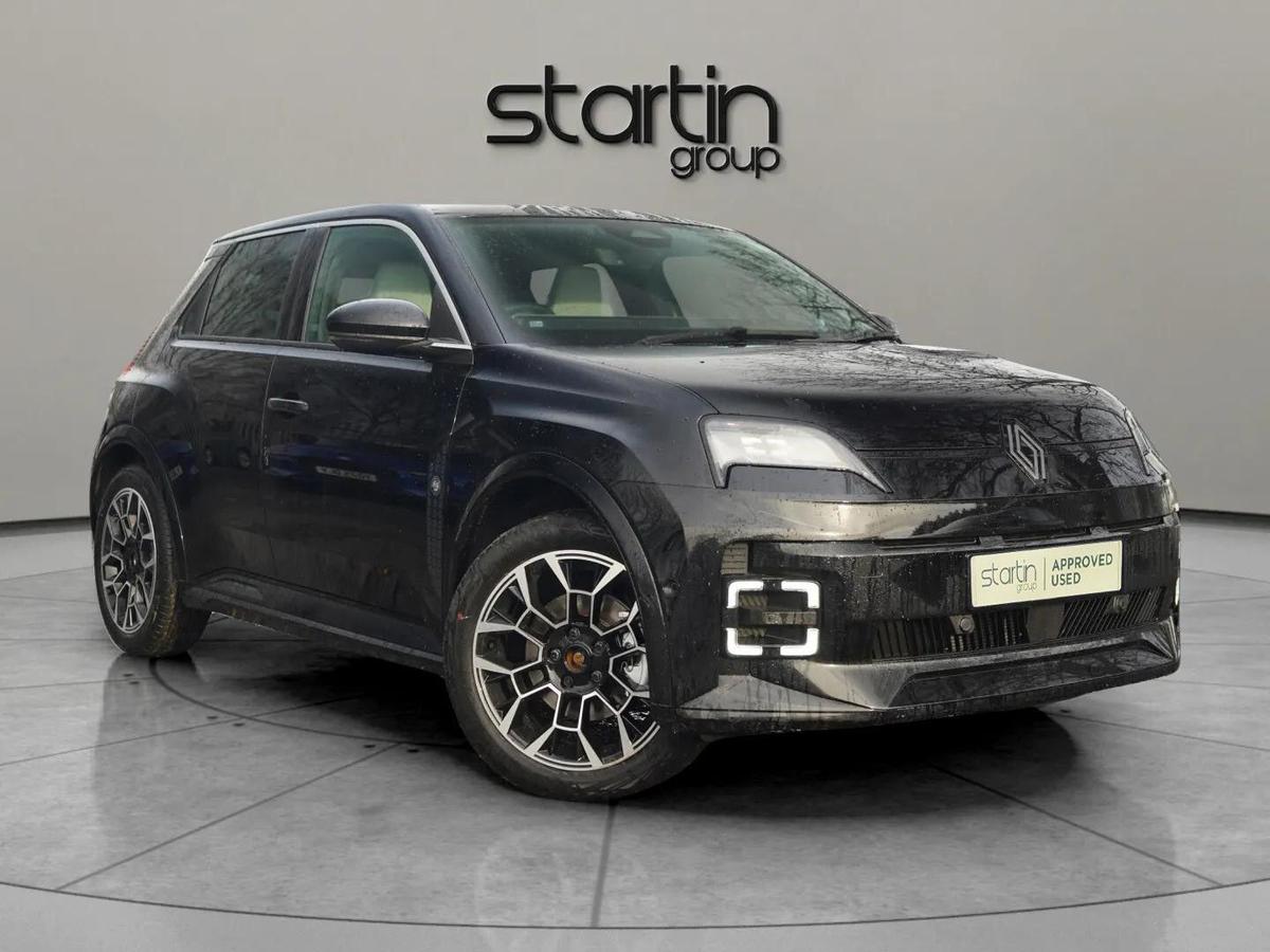 Ambient interior lighting with Renault 5 illumination under passenger dashboard