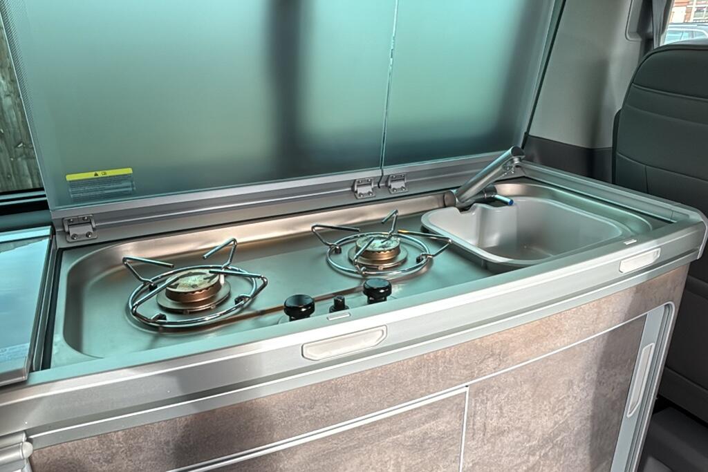 Fully functional kitchen with gas hob, sink and 42 litre compressor cool box