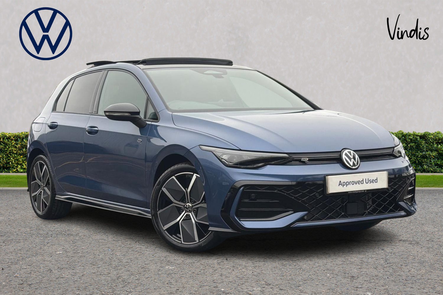 Volkswagen logo in front, illuminated lighting animation with wake up/goodbye scenario and illuminated door handles