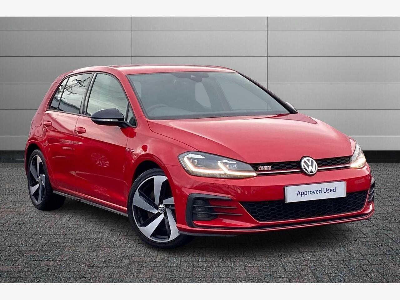 Multifunction leather steering wheel with GTI logo and selector lever boot grip with red stitching